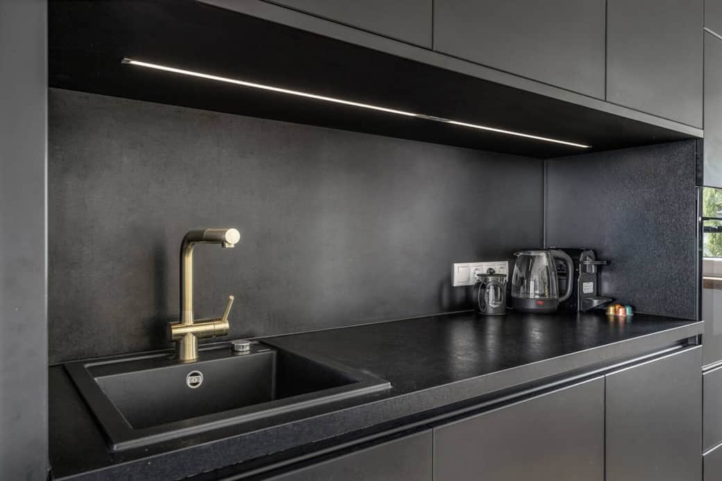 Children's high chair, Coffee machine, Cooking utensils, Dishwasher, Kitchen stove, Kitchenette, Microwave, Refrigerator