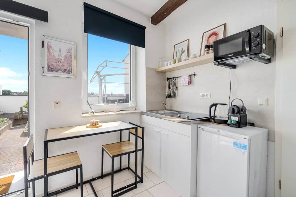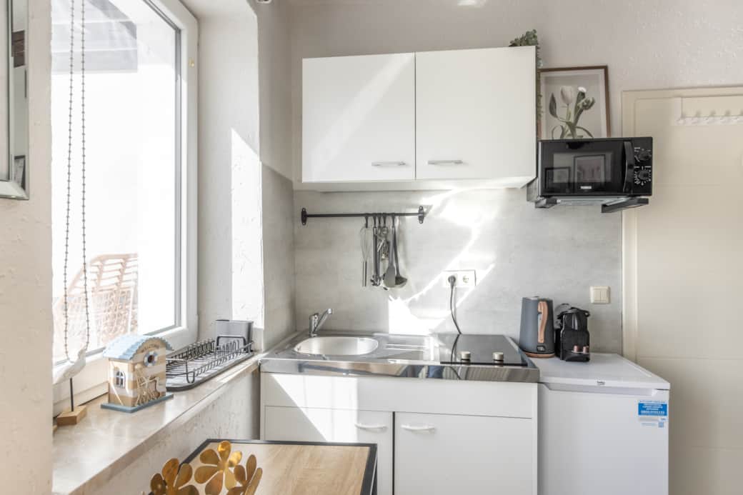 Silla alta para niños, Máquina de café, Utensilios de cocina, Fuego de cocina, Cocina pequeña, Microondas, Horno, Nevera